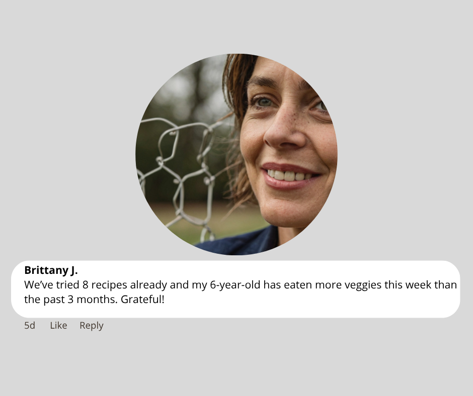 A: Perfect — that’s exactly who this was made for! The ebook includes a whole section on picky eater tips, plus meals that are colorful, customizable, and totally non-threatening. Parents say it’s helped their kids try more veggies in just a few days!